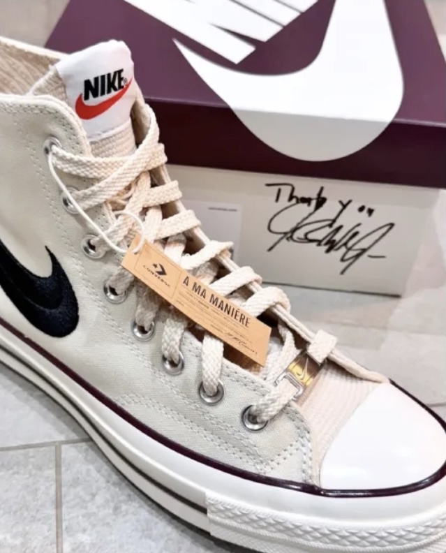 In a unique connection that blends heritage, luxury, and streetwear, A Ma Maniére, Converse, and Nike have come together to create an iconic reinterpretation of the timeless Chuck 70 silhouette. This partnership brings a compelling design twist to a classic sneaker, elevating it with thoughtful details that embody the ethos of A Ma Maniére while subtly integrating the Nike Swoosh logo.