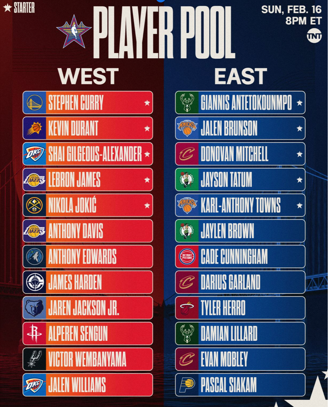 •First-Time All-Stars: In addition to Wembanyama, players like Jalen Williams, Alperen Şengün, Evan Mobley, Cade Cunningham, and Tyler Herro are making their All-Star debuts.