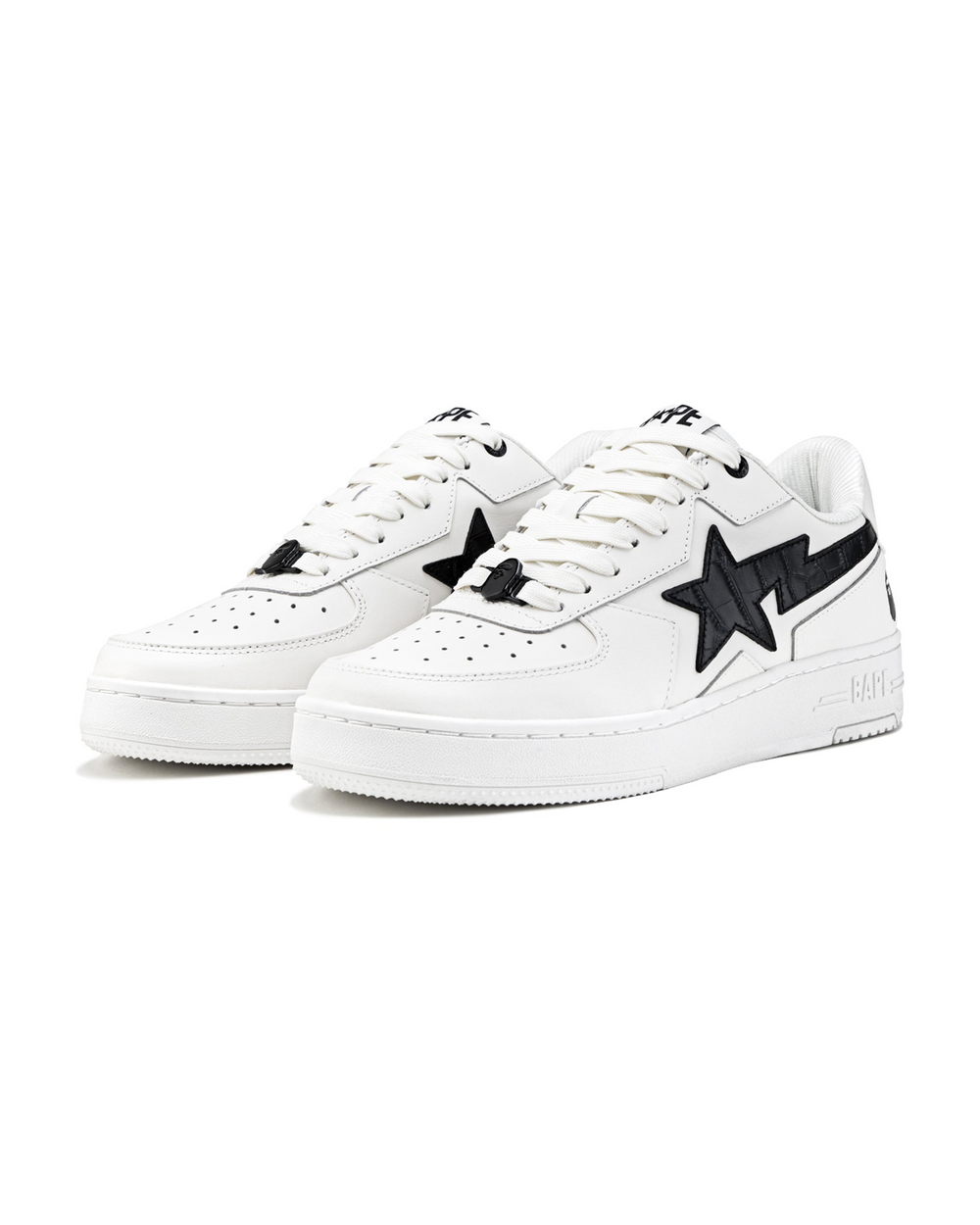 - Colorways: Presented in a range of high-impact tones—from classic white-on-white to camo-accented models and high-shine black-and-metallic combos—each option amplifies the statement-making legacy of the BAPE STA.