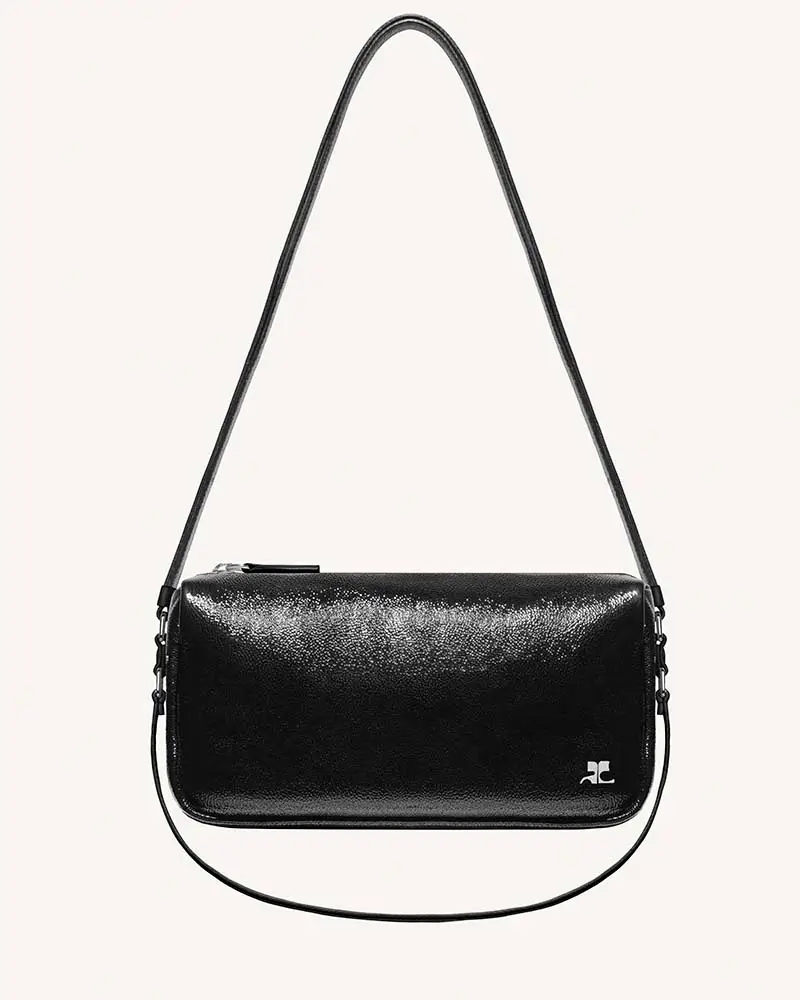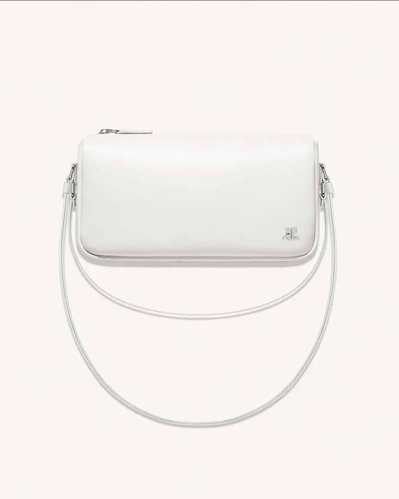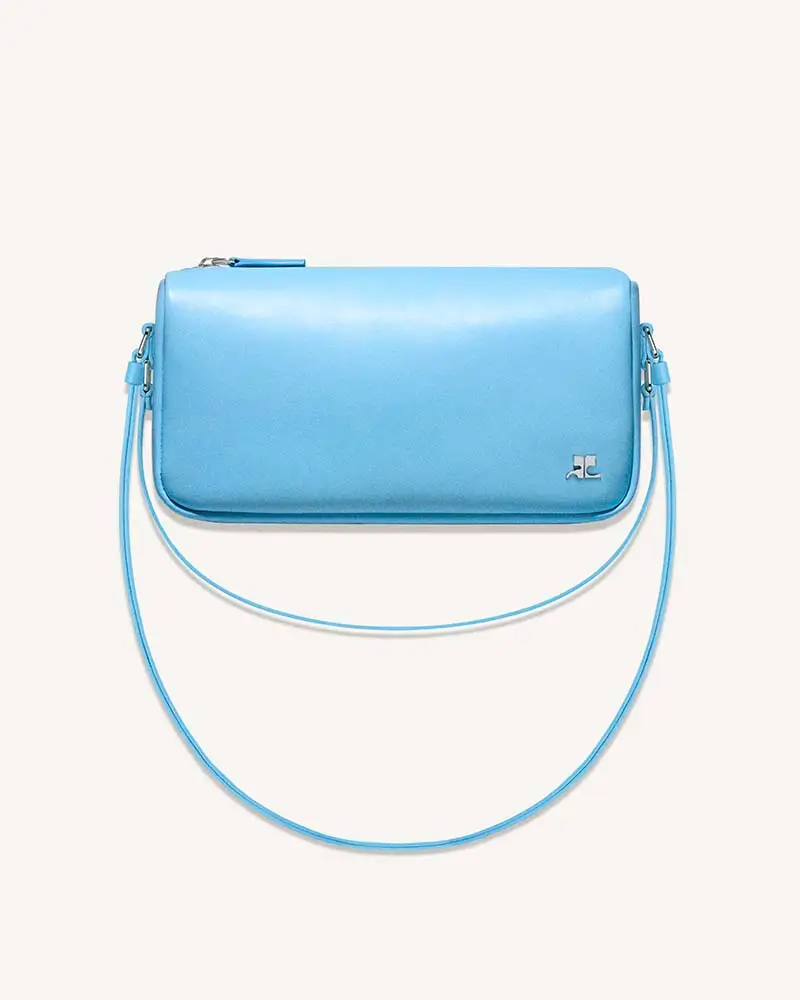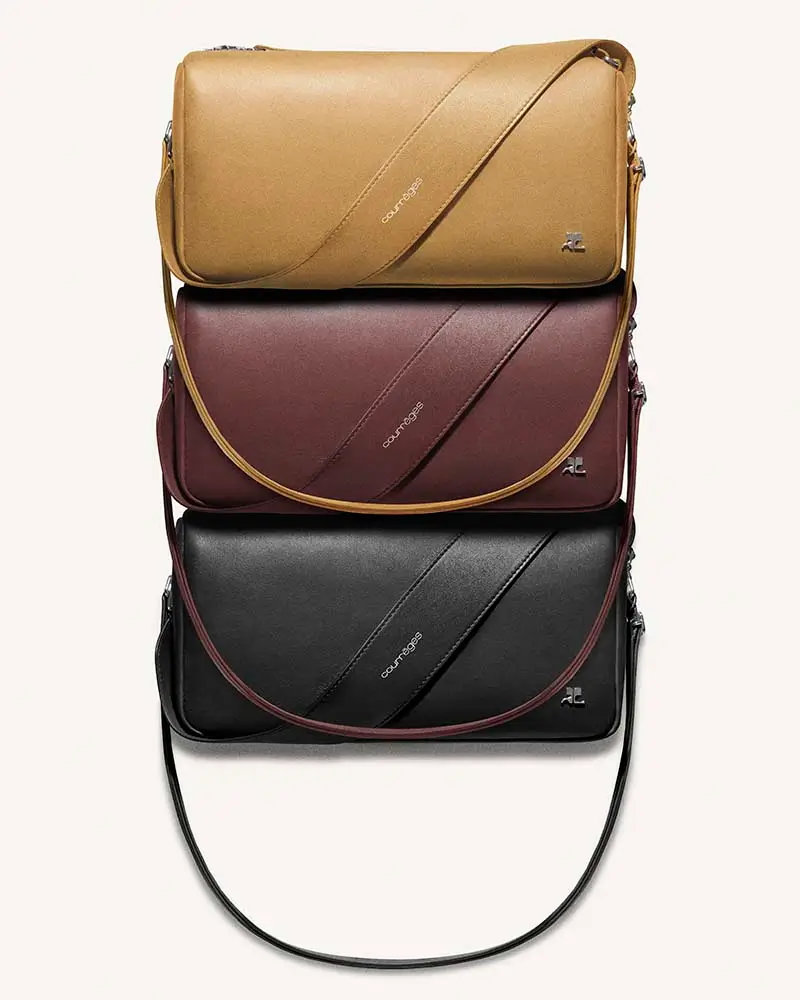 This balance matters. A bag built on motion risks losing coherence if the material does not anchor it. Too rigid, and the rotation becomes mechanical. Too soft, and the form collapses under its own adaptability. Courrèges finds a midpoint—firm enough to hold silhouette, soft enough to absorb movement.