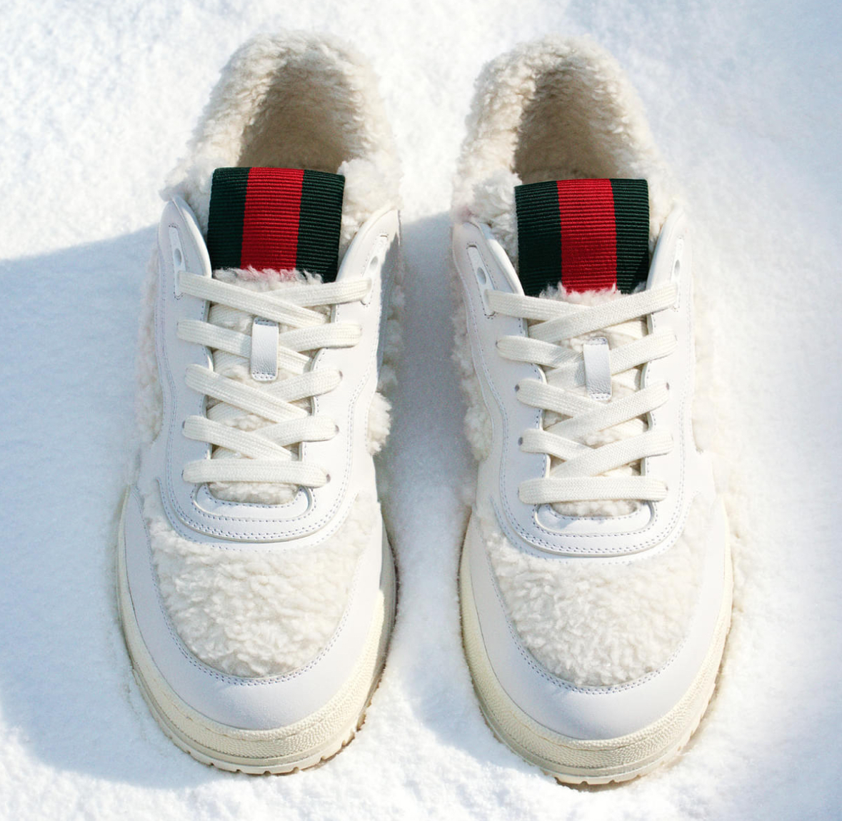 Sabato De Sarno’s Re-Web also takes center stage in Gucci’s footwear offerings. Sneakers and loafers adorned with the stripe receive modern upgrades, such as chunky soles and bold embellishments. These designs seamlessly blend comfort and style, making them perfect for both casual outings and more formal settings.