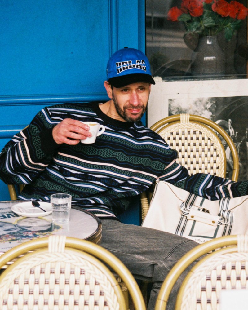 Instead of treating these influences separately, Hélas blends them into a unified wardrobe. A tracksuit may carry football-style stripes while maintaining basketball proportions. A knit polo references tennis attire but pairs naturally with skate-ready denim. The result feels cohesive rather than nostalgic.