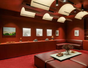 Polished concrete and brushed aluminum reference the urban terrain of the city’s sidewalks and running tracks. Bleached oak and natural stone inject warmth without nostalgia. Modular steel racks appear industrial yet adaptable. Throughout, there’s a visual tension between utility and comfort—tactile surfaces that ask to be touched, architectural lines that gently guide rather than dictate movement.