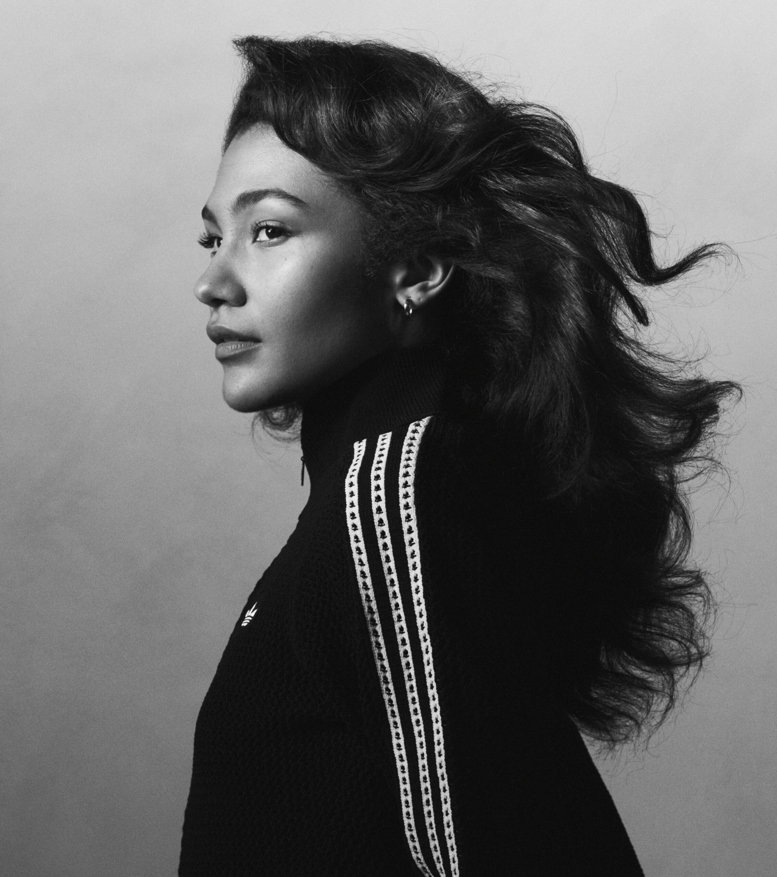 If the Superstar is the anchor, the apparel becomes the atmosphere. The campaign extends beyond footwear into a wardrobe that feels simultaneously archival and contemporary.