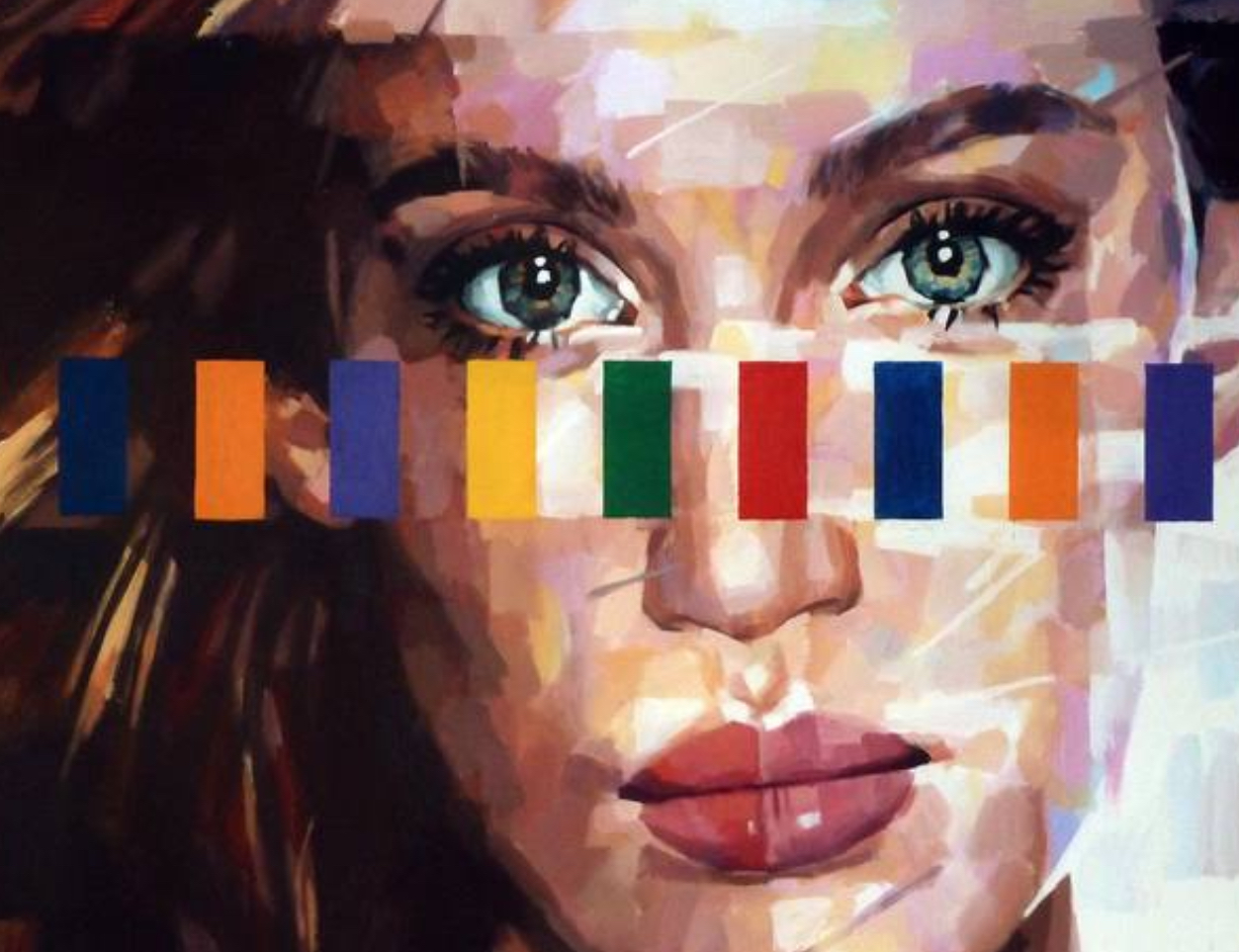 •Pixelated abstraction – Parts of the face and hair are reduced to square and rectangular shapes, a direct reference to digital pixelation.