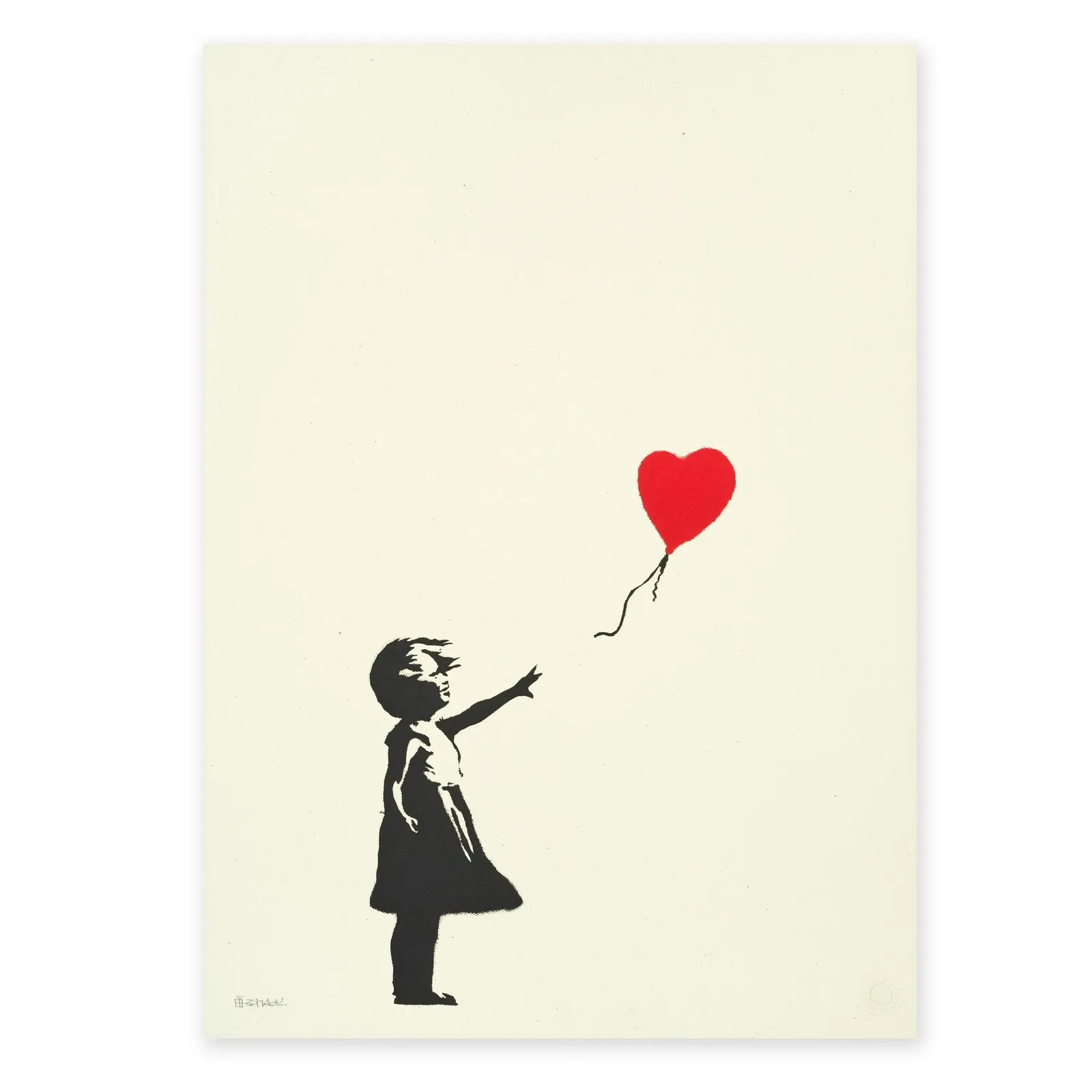 The print editions of Girl With Balloon symbolize this transformation: a street image reproduced as a collectible object within the art market.