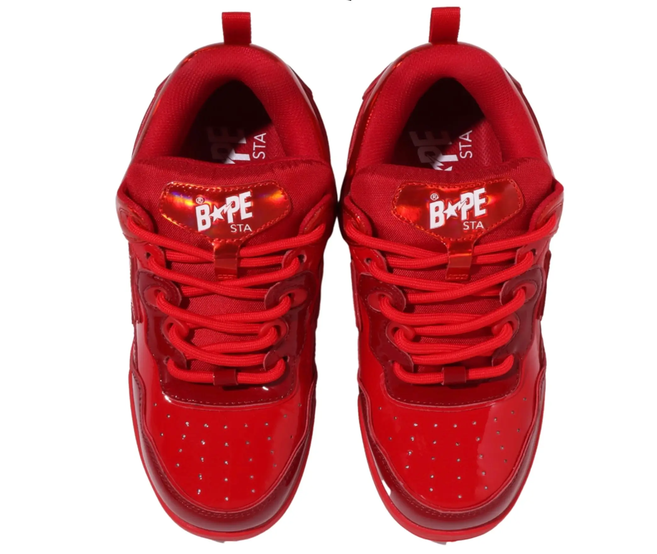 Red sneakers are never neutral. They carry energy, visibility, and ego. The Flip Sta Red uses red not as accent but as foundation. Its overlays adopt a lacquer-like red with a subtle gloss that echoes the era of patent leather Bapestas without being a one-to-one replication. The shoe balances nostalgia with a more refined execution—less plasticky shine, more luxury enamel tone.
