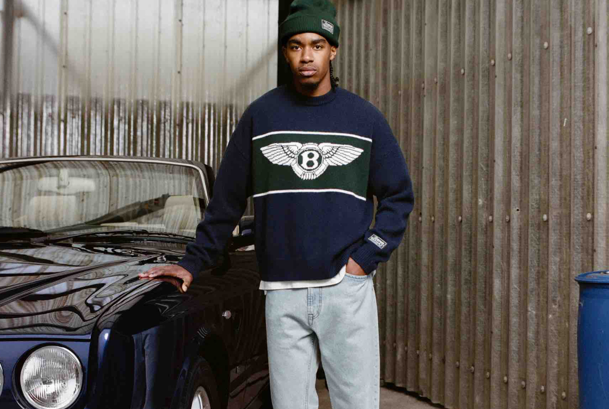- A black leather bomber jacket embossed with Bentley’s winged insignia, nodding to the carmaker’s motorsport roots while embracing streetwear muscle.