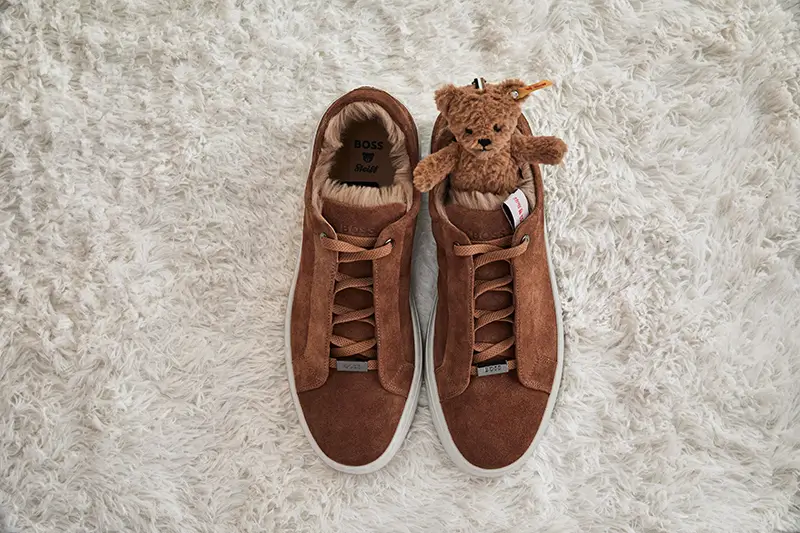 BOSS creative teams worked closely with Steiff’s material specialists to ensure authenticity, even replicating the tactile feel of traditional bear fur while maintaining modern performance standards.