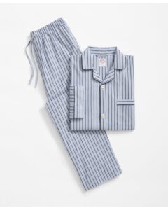 Historically, the word “pajama” originates from the Persian “pāy-jāma,” which simply means “leg garment.” This garment traveled from Persia and India to the Western world via British colonial officers in the 18th century, who favored the loose, comfortable design for tropical climates. By the early 20th century, pajamas had become popular in Europe and America as a sophisticated alternative to nightshirts. They embodied a new, modern approach to sleepwear: structured yet soft, formal yet leisurely. Brooks Brothers, with its keen sense of classic American style, naturally adopted pajamas into its offerings, merging Old World tradition with New World practicality.