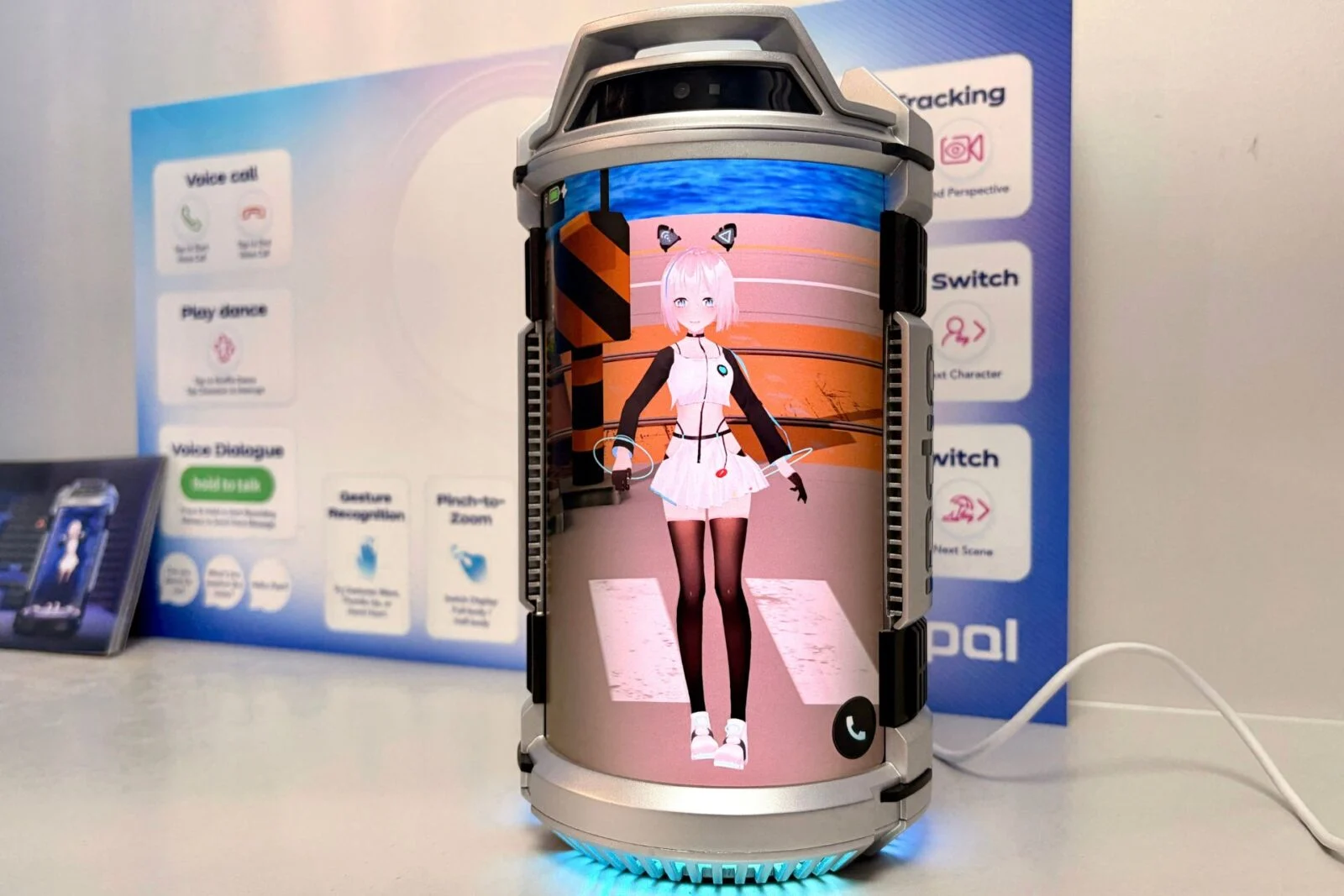 The breakout hardware form factor of CES 2026 was the cylindrical desk companion. These devices typically featured a transparent or semi-transparent enclosure, with an animated AI figure appearing to stand inside. Subtle lighting effects and circular bases reinforced the illusion of depth, making the avatar feel contained yet alive.