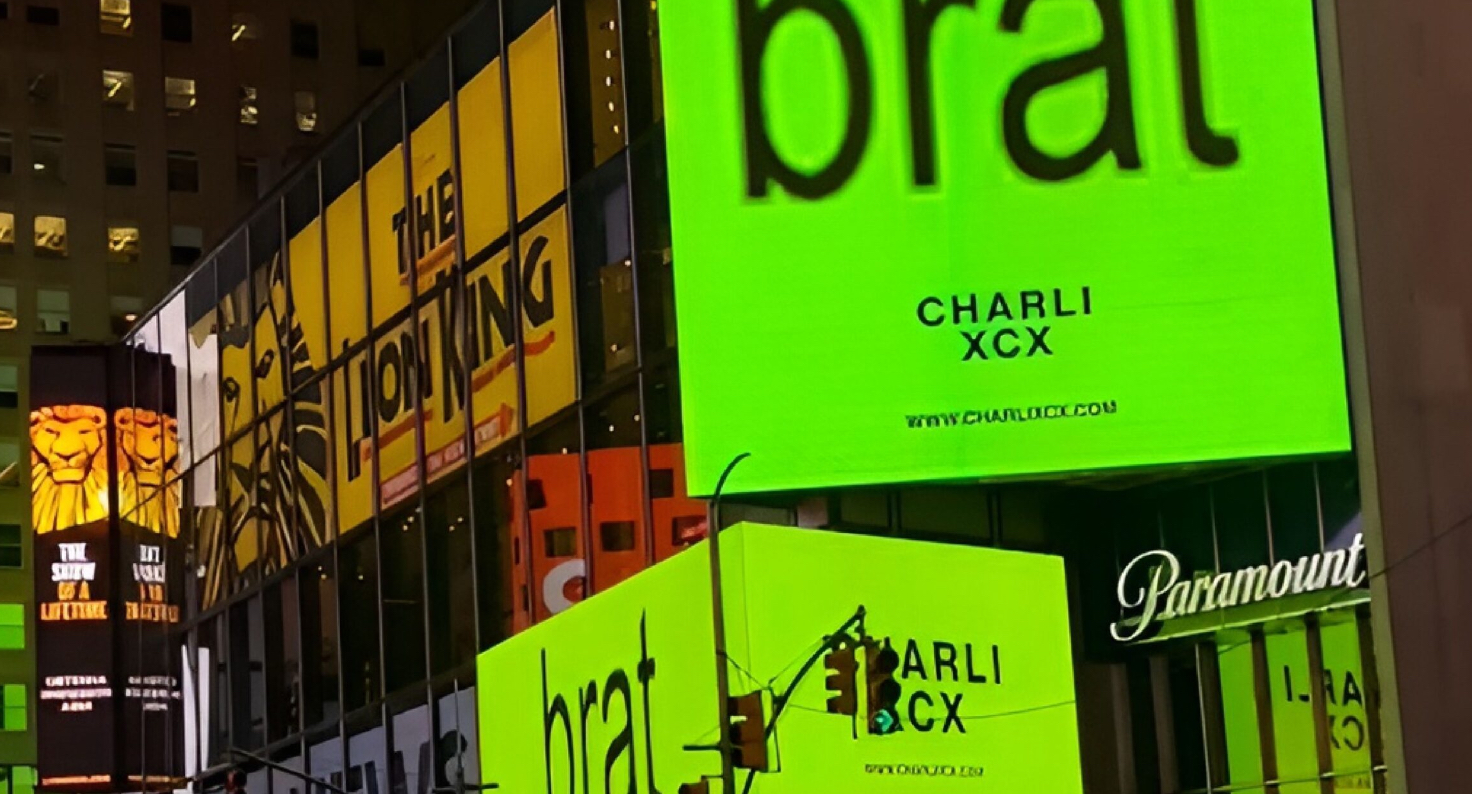 The impromptu concert took place in the midst of the hustle and bustle, with Charli performing atop a minimalist stage setup that contrasted beautifully with the overwhelming sensory overload of Times Square. Surrounded by the glow of LED advertisements and the flashing lights of a thousand smartphones, the scene felt like a deliberate commentary on the digital age—one of the central themes explored in Brat.