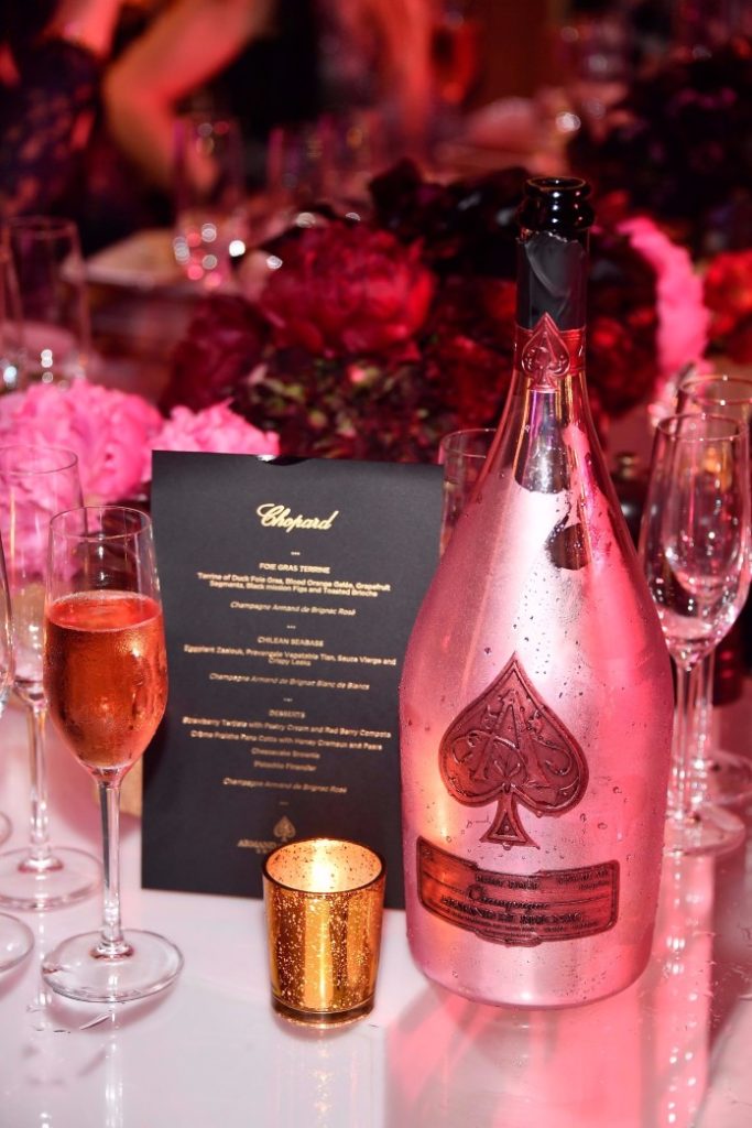 Tables were dressed in deep black linens, punctuated by elegant white floral arrangements and flickering candles. Every detail was deliberate, from the engraved crystal glasses to the bespoke menus tied with satin ribbons. It was less a dinner and more a stage performance, with every element designed to echo the grandeur of the champagne itself.