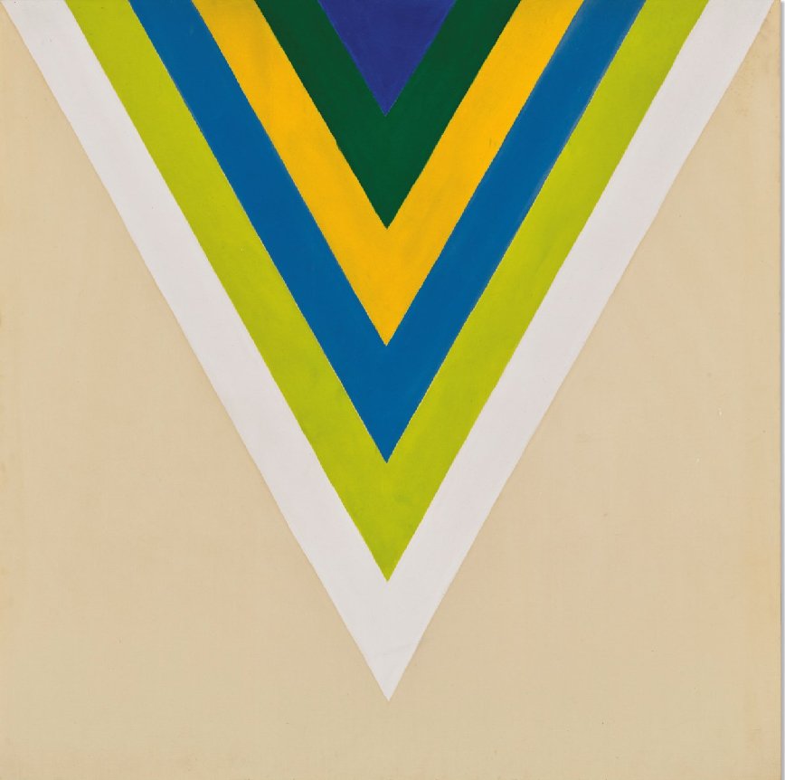 Kenneth Noland (1924–2010) emerged as a central figure in the Color Field movement that flourished in the 1950s and ’60s, alongside artists like Morris Louis, Helen Frankenthaler, and Jules Olitski. A student of Josef Albers at Black Mountain College, and briefly influenced by the theories of Paul Klee, Noland’s foundational education in modernist color theory would forever shape his artistic output. But unlike the gestural histrionics of Abstract Expressionism, Noland’s work abstained from overt emotion. Instead, his career became a meditation on restraint and a challenge to the very frame of the canvas. He dissolved the brushstroke into the surface itself, soaking pigment directly into raw, unprimed canvas, often relying on symmetrical motifs like targets, chevrons, and stripes to anchor the viewer’s gaze.