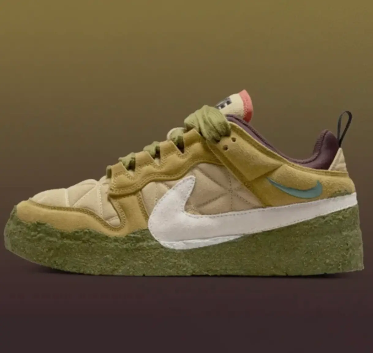 The “Desert Moss” colorway embodies this mindset. Its earthy palette and unusual silhouette evoke natural landscapes while still maintaining a futuristic edge.