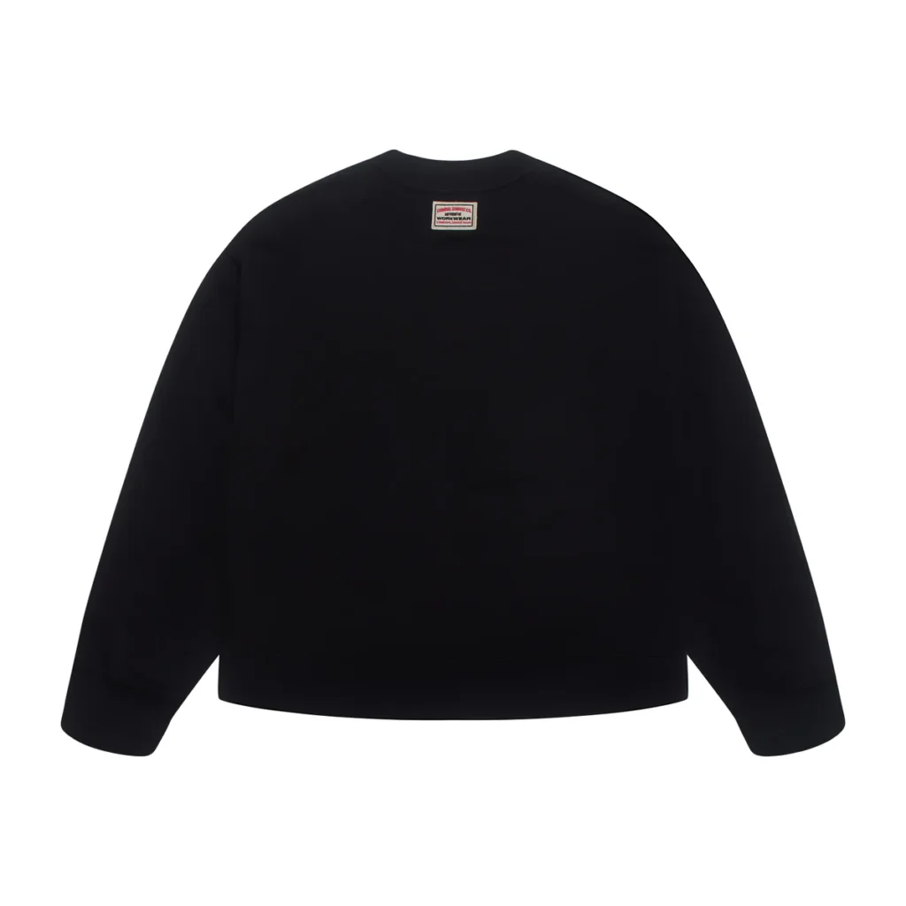 At first glance, it’s a blackout crewneck—clean, unfussed, almost minimal. But step closer and the story reveals itself. The front chest carries a bold, oversized 91, executed in a raised faux-animal texture that reads like sculptural reptile skin. The effect is immediately striking: athletic typography fused with luxury-inspired tactility. It’s the sort of graphic that catches light in a way fabric shouldn’t, adding dimension without relying on colour. In an era where streetwear often leans on volume and vibrancy, this sweatshirt proves that monochrome can still be the boldest statement in the room.