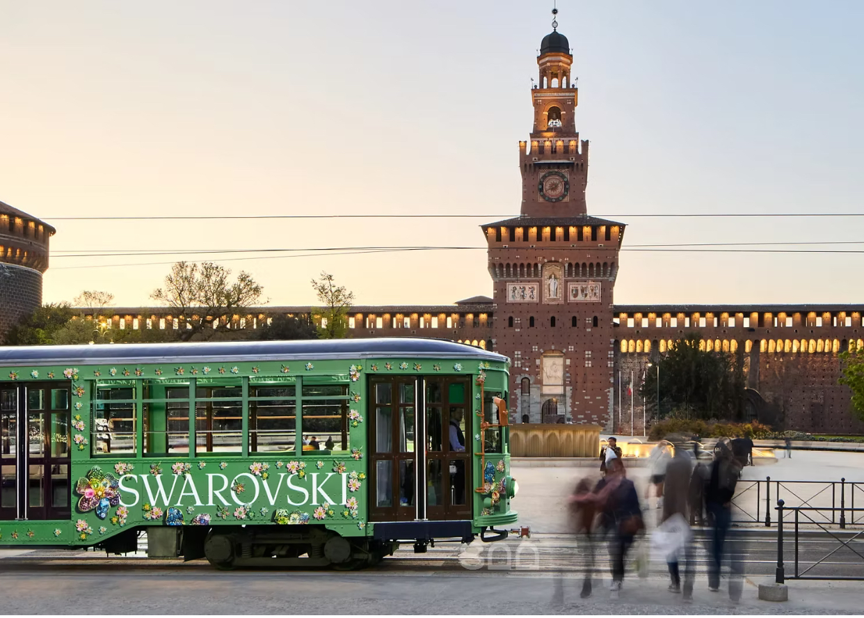 In a city where design is the primary language, and where beauty is built into the bricks of every palazzo, it takes something truly extraordinary to stand out. This year, Swarovski accomplished just that—without a traditional storefront, static booth, or glossy flagship. Instead, the storied crystal house transformed one of Milan’s most beloved icons, the city tram, into a rolling canvas for its fantastical Idyllia collection, offering a multi-sensory, mobile brand experience unlike anything seen at Design Week before.