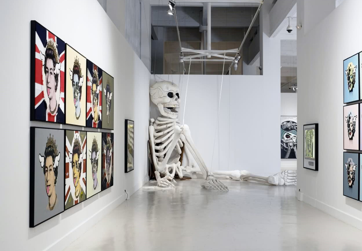 Among the most notable pieces in the exhibition was a large-scale skeletal installation, a recurring motif in D*Face’s work. This piece captured his signature exploration of mortality and the impermanence of success, offering a striking visual representation of his overarching themes.