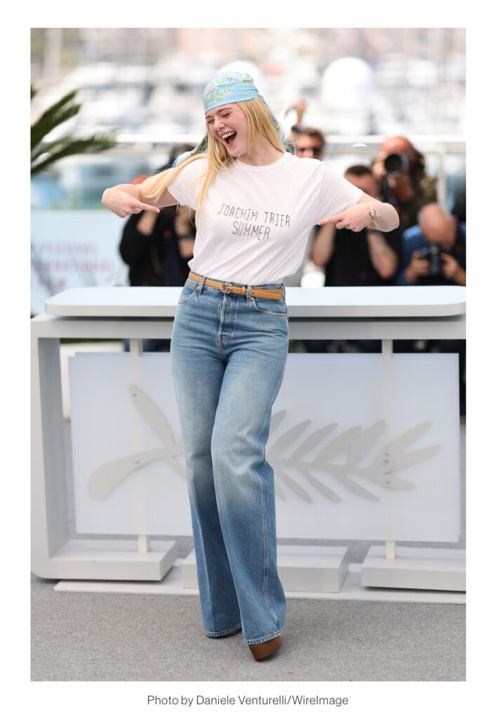 In 2023, Elle Fanning stepped onto the Cannes Film Festival stage wearing T-Shirt #316—a white tee emblazoned with the phrase “Joachim Trier Summer” on the front and “DYLAN’S T-SHIRT CLUB” on the back. The shirt wasn’t designed for commercial gain—it was a personal tribute to the Norwegian director behind The Worst Person in the World. The phrase had become an inside joke between Dylan and his family. But when Elle wore it at Cannes, it instantly transformed into a cultural artifact, traversing the line between niche homage and red carpet statement.