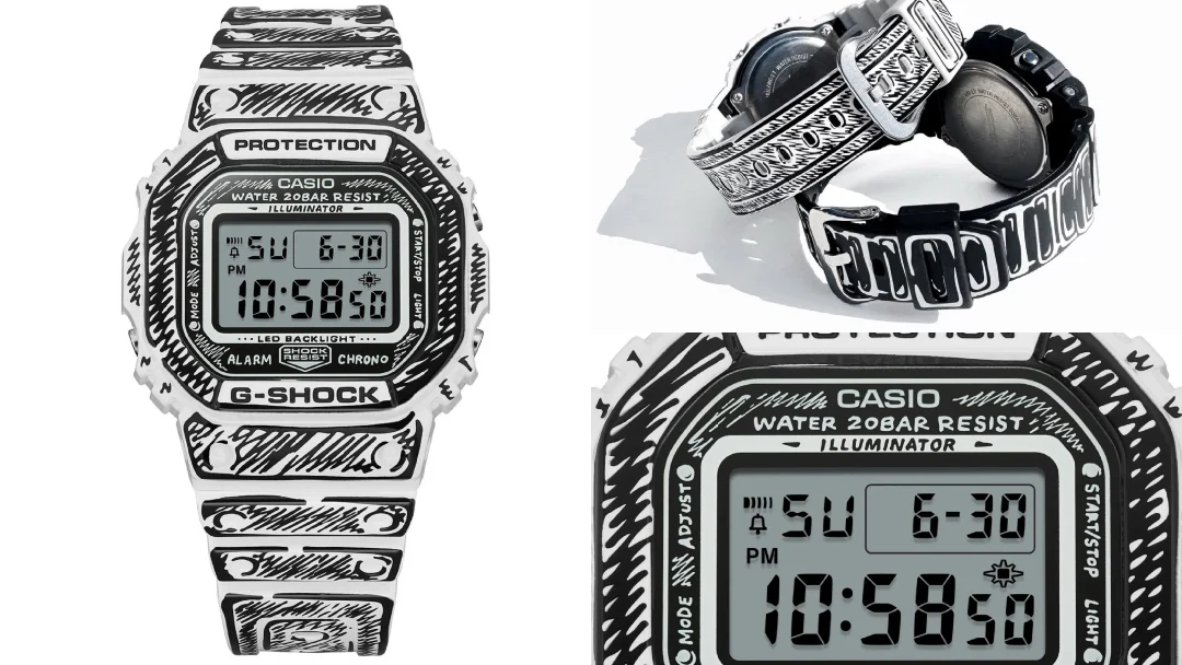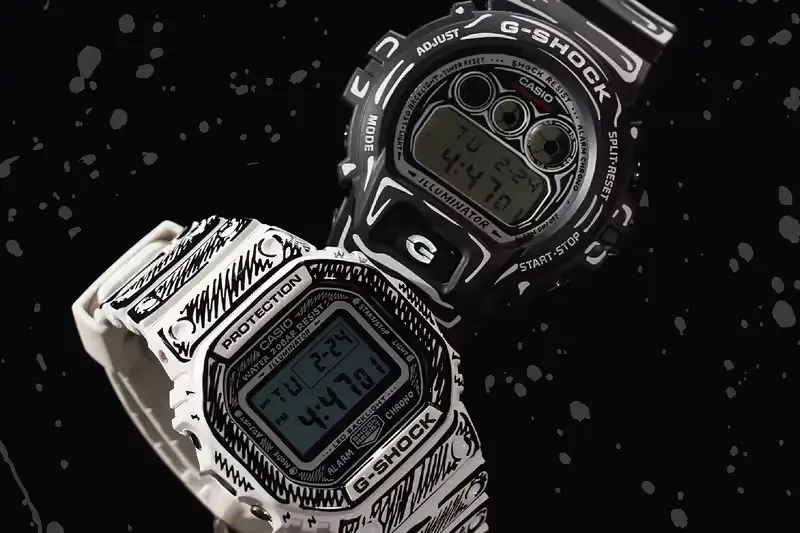 A watch that appears to have been outlined with a thick marker pen sits at the center of a striking new connection between G‑Shock and Los Angeles artist Joshua Vides. The project transforms two of the most recognizable digital watches ever produced by Casio into objects that seem pulled directly from a sketchbook rather than assembled on a factory line.