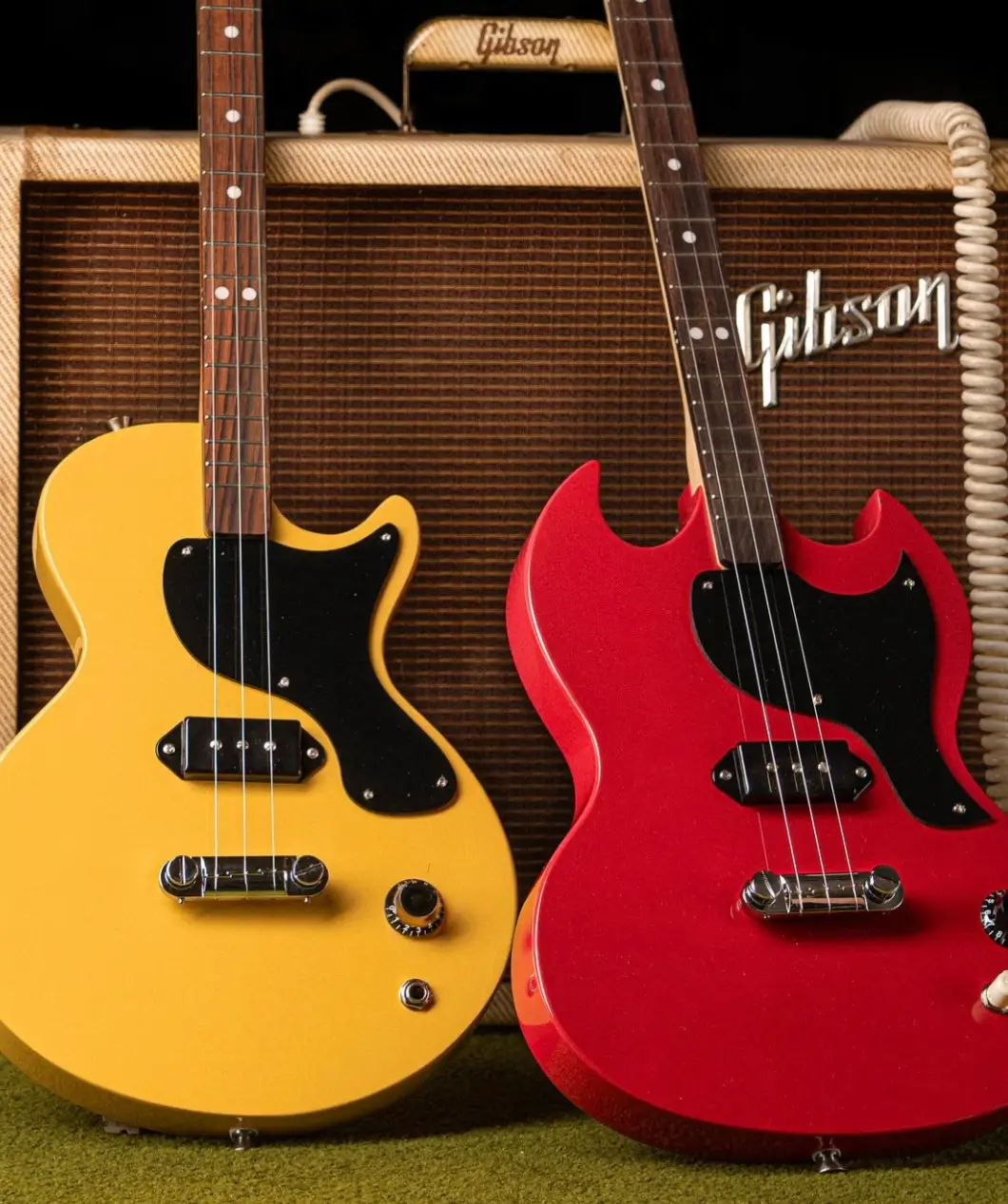 Available in Cherry Red, TV Yellow, and Pelham Blue, the finish options evoke Gibson’s vintage palette. The headstock bears both logos — a visual handshake between the old guard and the new wave.