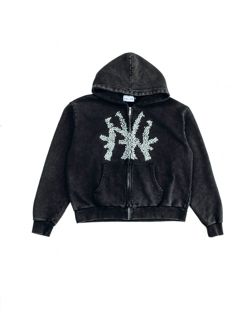 In a culture where everyone is trying to scream louder, this hoodie whispers with intent. Its pearls don’t just decorate—they defy. And in doing so, they place STOLEN ARTS firmly at the center of a new design vanguard: one that thrives on contradiction, that elevates without erasing, and that refuses to be categorized by algorithmic taste.