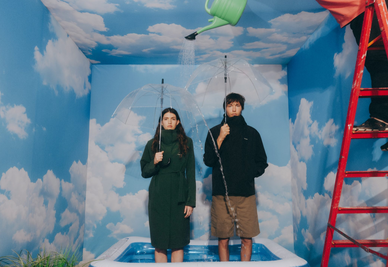Photographed on Norway’s western coast, the collection’s campaign eschews glamour in favor of sincerity. The imagery embraces blurriness, movement, and the ordinary grace of seaside youth. Models perch on ferry railings, leap through meadows, swim in cold lakes. The campaign does not attempt to stage fantasy—it documents freedom.
