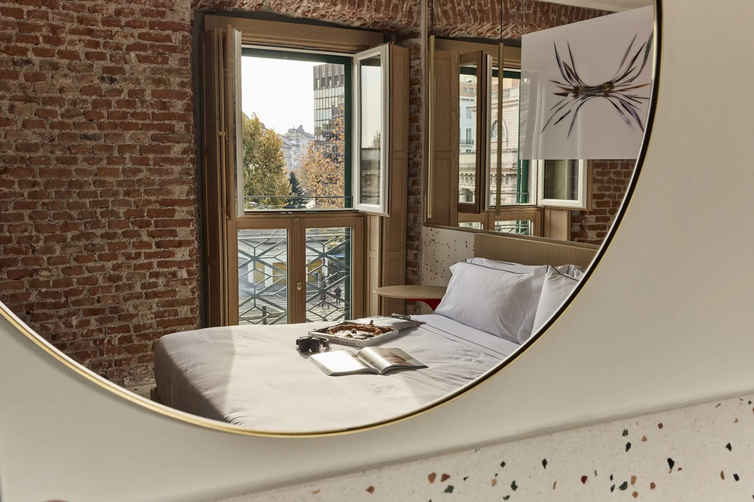 Light conjures a center role in shaping the atmosphere of Hotel Milù Milano. Natural light is prioritized wherever possible, with large windows and reflective surfaces used to maximize its impact.