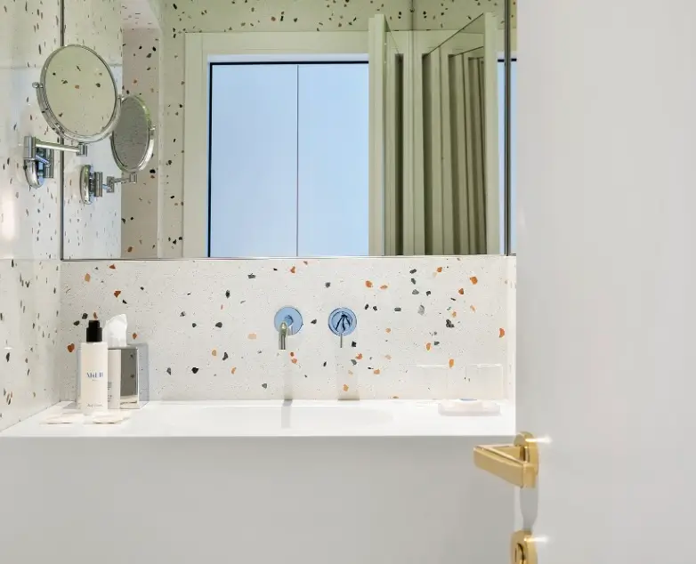 Bathrooms at Hotel Milù Milano introduce a subtle yet effective contrast to the rest of the space. While maintaining the material continuity established in the rooms, they incorporate elements that shift the sensory experience.