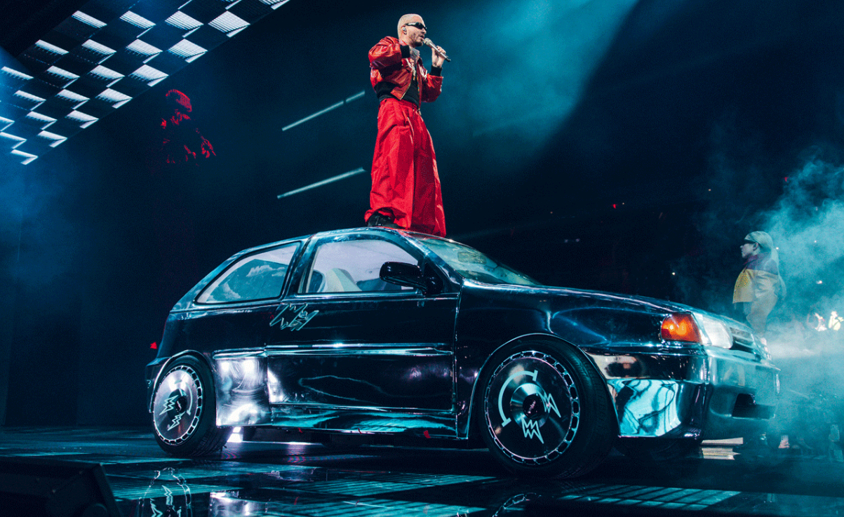A standout feature of the show was the presence of Balvin’s first car, a 1997 Volkswagen Pointer, affectionately named “Rayo.” Originally a modest red vehicle, it has been transformed with a chrome finish, white interior, and upgraded sound system. Balvin emphasized its significance: