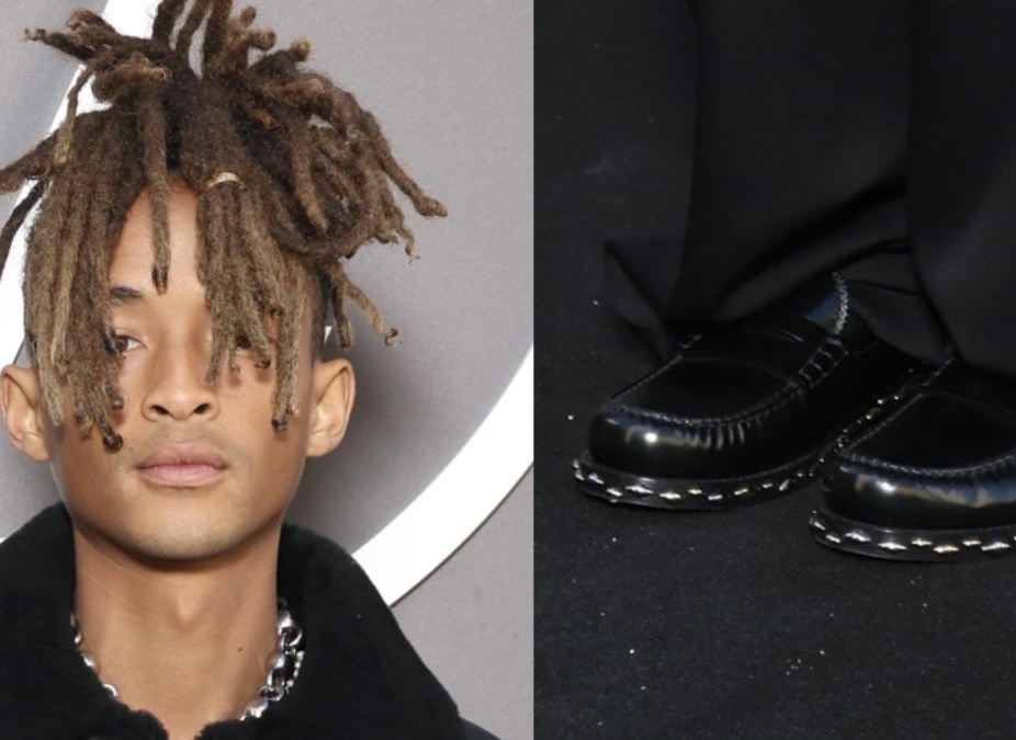 These loafers, made from high-gloss patent leather, served as a literal and figurative reflection of the wearer’s journey. The shards, sharp and aggressive, represented the obstacles and challenges that one faces in the pursuit of creative expression. The contrasting softness of the leather against the harshness of the metal conveyed the delicate balance between vulnerability and defiance—an ethos that resonates with Jaden’s personal style and artistic endeavors.