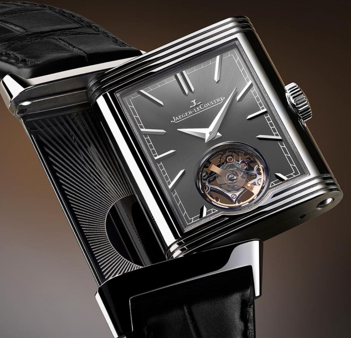 At the heart of this timepiece lies the ultra-thin Calibre 847, a marvel of watchmaking engineering. Jaeger-LeCoultre’s ability to integrate a flying tourbillon into a movement just 3.9 mm thick is an impressive feat, showcasing the brand’s innovative spirit. The tourbillon, originally developed to counteract the effects of gravity on a watch’s accuracy, is here presented in a reinvented form that complements the Reverso’s slim, refined profile.