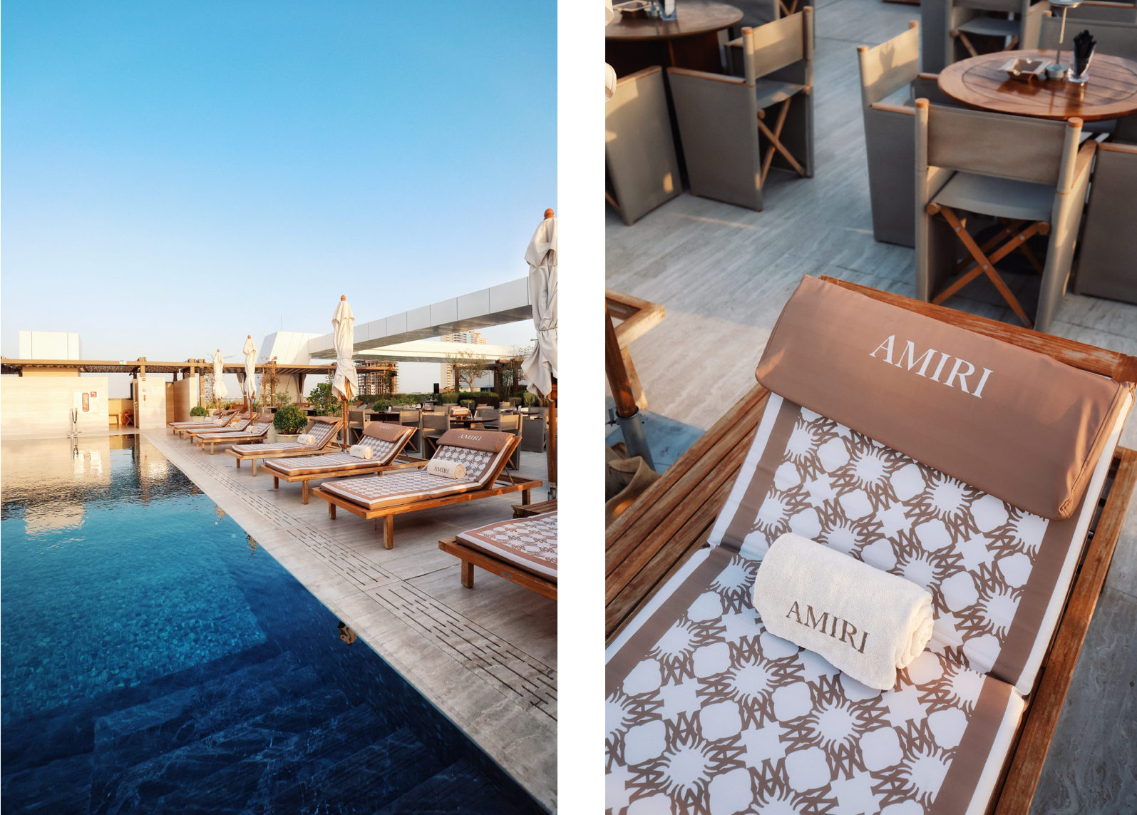 The AMIRI rooftop activation is less a showroom and more a cinematic environment—part Sunset Strip, part Arabian Futurism. Designed in conversation with The Jeddah EDITION’s architectural cues, the space features soft curves, sand-toned palettes, and modular seating that invites both intimacy and spectacle.