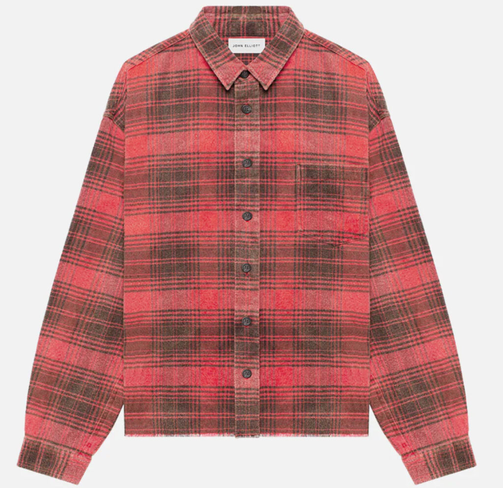 While the shirt clearly takes cues from the utilitarian origins of flannel as workwear, it is far more refined than your average plaid shirt. The focus on high-quality materials, combined with its distressed aesthetic, means that this piece works as part of a well-curated outfit, whether paired with jeans, chinos, or even sweatpants. In this sense, the “John Elliott Hemi Oversized Shirt” walks the fine line between casual and luxury, making it an accessible statement piece for the fashion-forward individual.