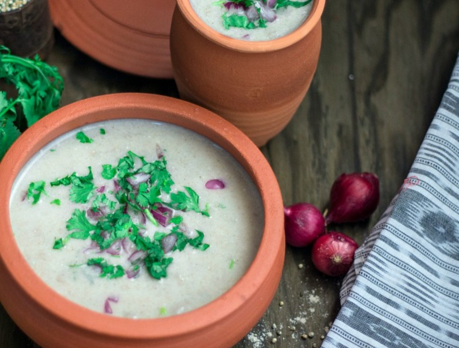 For an authentic touch, serve koozh in clay pots, which help maintain its cool temperature and enhance the flavor.