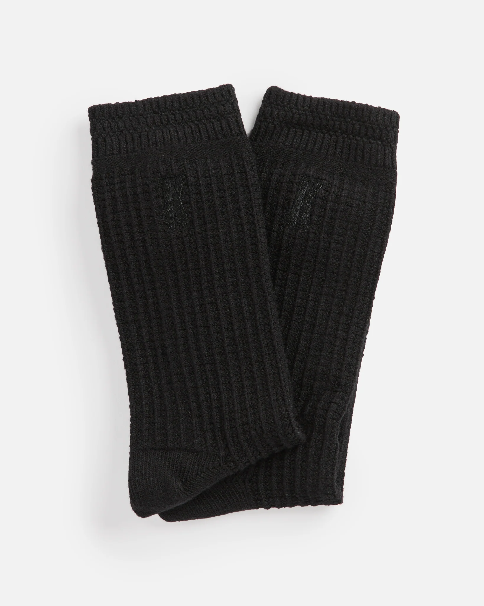 At the core of the design is a breathable waffle-knit cotton construction. The subtle grid texture does more than elevate the visual surface—it enhances airflow and creates a soft, cushioned feel without bulk. The result is a crew-length silhouette that feels light enough for transitional weather yet substantial enough to anchor a full fit.