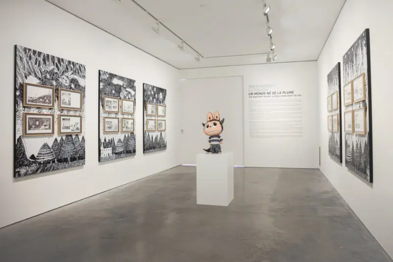 Visitors encounter large-scale LABUBU sculptures alongside original sketches, paintings, and concept designs. These works reveal how the characters evolved from early drawings into globally recognizable figures.