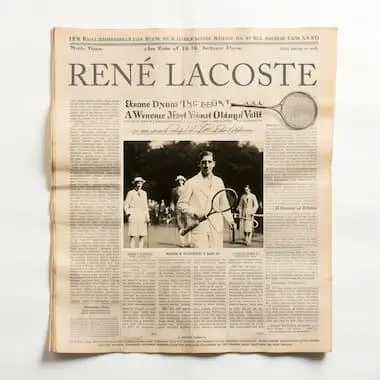 At the center of the narrative sits René Lacoste—tennis champion, inventor, and now, effectively, a character within his own brand mythology.