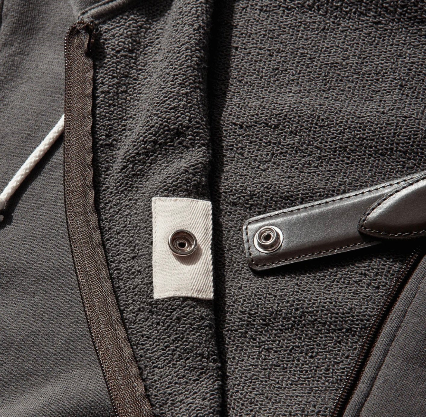 The hood itself maintains structure without being bulky. When worn down, it rests cleanly across the upper back. When worn up, it frames the face without collapsing. Small design decisions like this contribute to the garment’s overall polish.