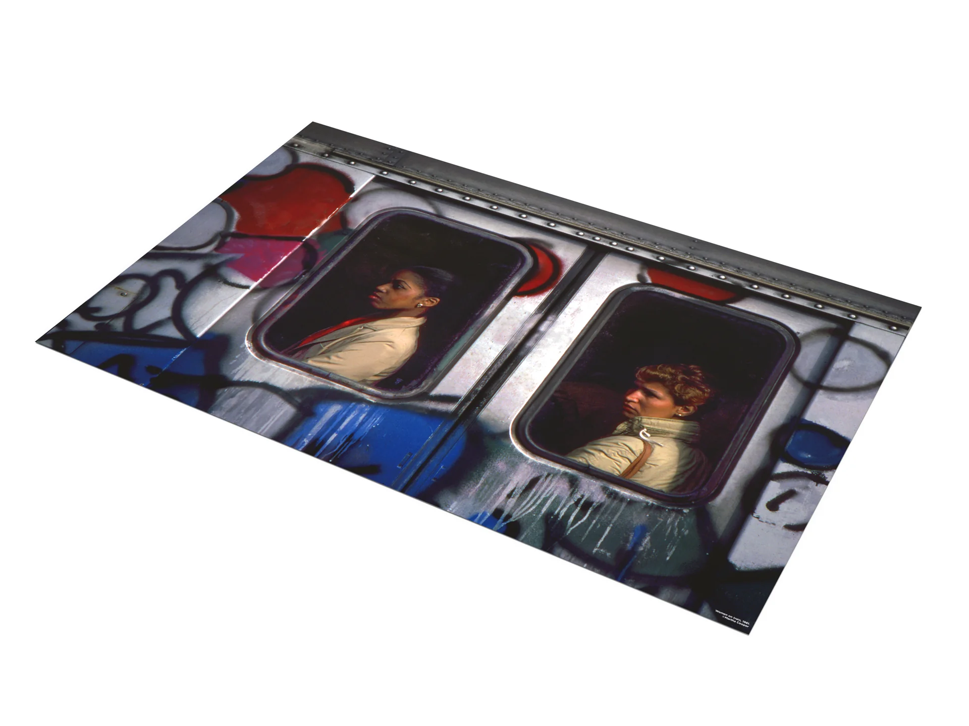 The poster features one of Cooper’s iconic graffiti photographs, transforming a moment of underground culture into a gallery-scale artwork suitable for display.