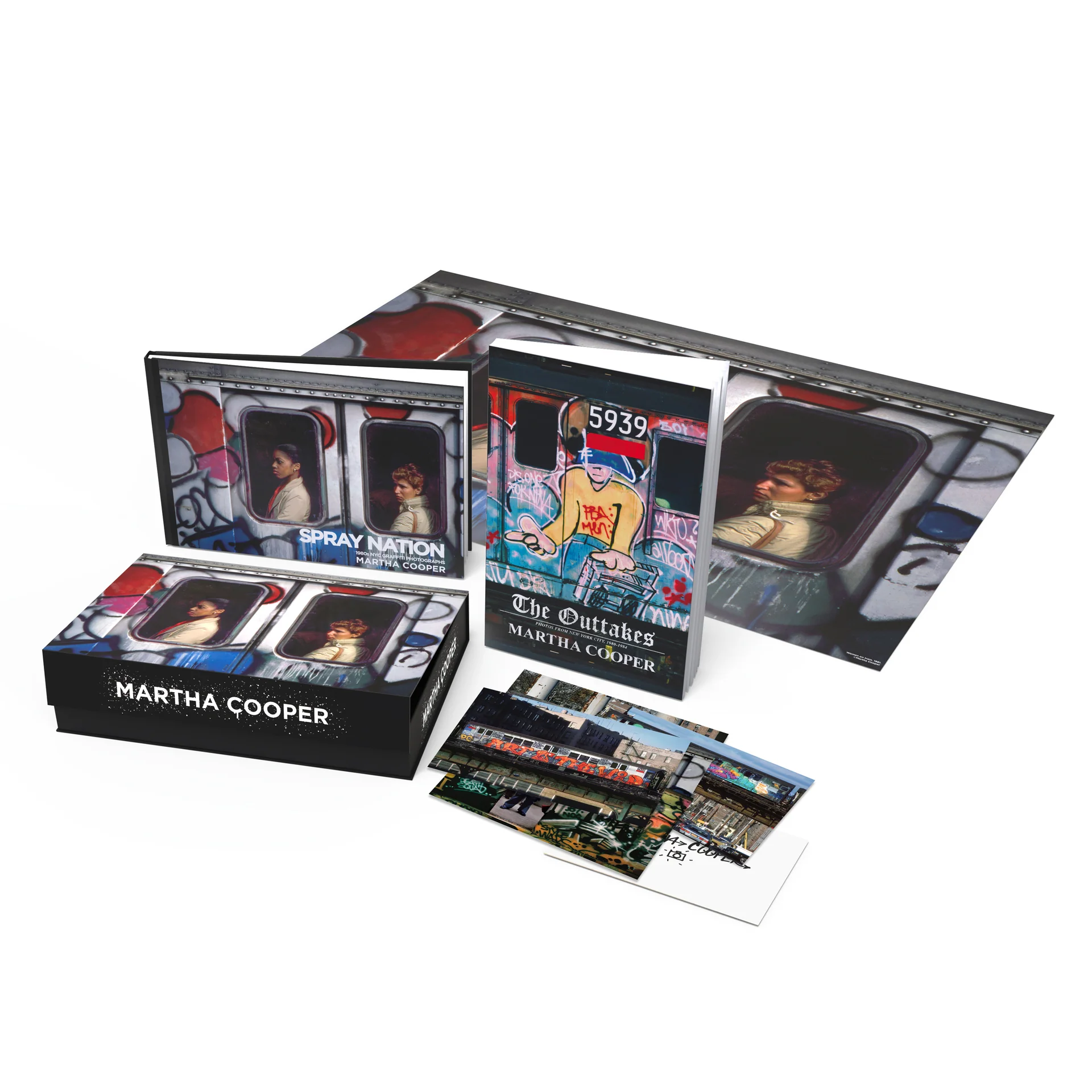 The centerpiece of the box set is the large-format hardcover edition of Spray Nation: 1980s NYC Graffiti Photographs.
