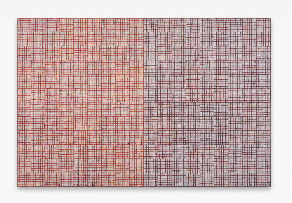 At first glance, Chicago:2024 presents a bifurcated field: the left side in a luminous wash of red-orange, the right a muted purple-crimson haze. Each side is composed of a dense matrix of hand-drawn squares—rigid, unforgiving, precise in their imperfection. These aren’t mechanical reproductions; they are handmade—flawed, fluctuating, human.