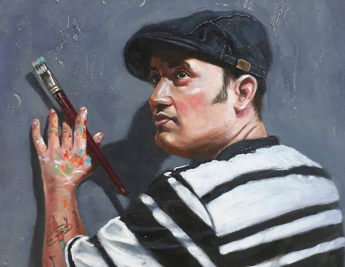 The captivating self-portrait titled “Me and My Brush” by Indian artist Sandip Raval invites viewers on an introspective journey into the heart of artistic expression. This painting not only reflects the artist’s journey but also highlights the deep connection between the creator and his artistic process, serving as a testament to the power of introspection and self-discovery.
