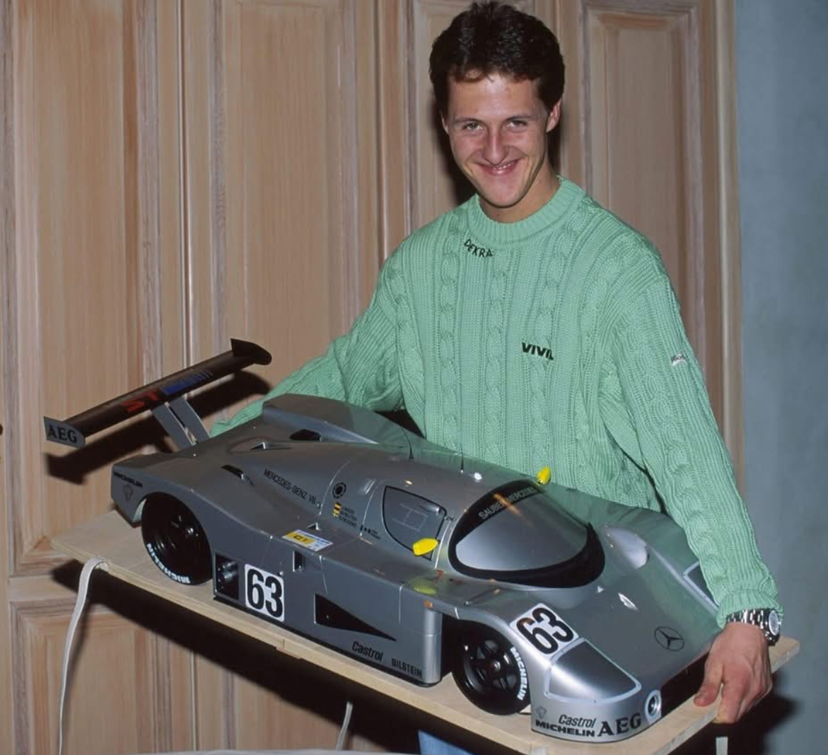 The photograph of Schumacher with the 1:5 scale Sauber C9 encapsulates a moment of reflection and anticipation. The scale model serves as a tangible representation of his formative years in endurance racing, a period that laid the foundation for his future successes. It symbolizes the intersection of past experiences and future aspirations, capturing a pivotal juncture in Schumacher’s journey.