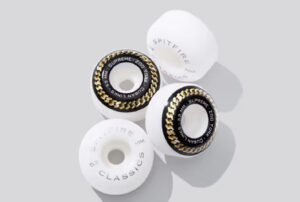 The pièce de résistance: a Zoo York x Supreme deck, dipped in mixtape visuals. The underside is a freeze frame from Umali’s original film, with type that bleeds like xerox ink. Spitfire® Classic Wheels, co-branded and ready to take beatings from asphalt, round out the kit—practical tools that also double as heirlooms.
