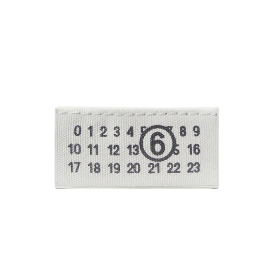 The clutch pochette makes this code its focal point: a minimalist rectangle embossed or stitched with the numeric sequence 0 to 23, highlighting “6”—the signature of the MM6 line. It’s both a logo and an anti-logo, an ironic badge of anonymity.