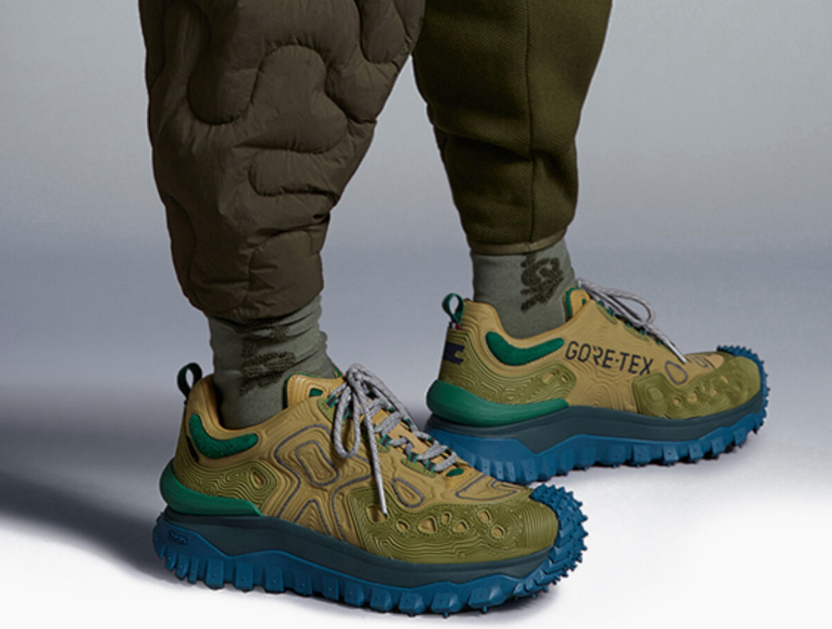 The color palette ranges from earthy tones to vibrant accents, emphasizing the natural inspiration while maintaining a bold, modern look. Moncler’s logo is seamlessly integrated into the design, ensuring the sneaker’s luxury branding is unmistakable.