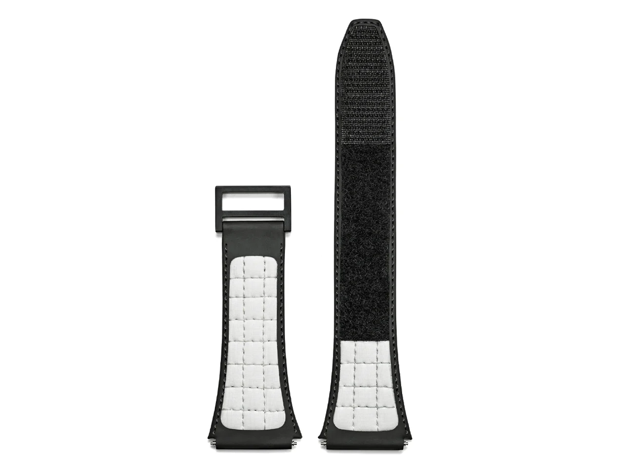 The strap, often realized in technical rubber or woven performance fabrics, reinforces the watch’s utilitarian identity. It is designed for durability and comfort, but also to complement the overall material language—functional, precise, and quietly advanced.