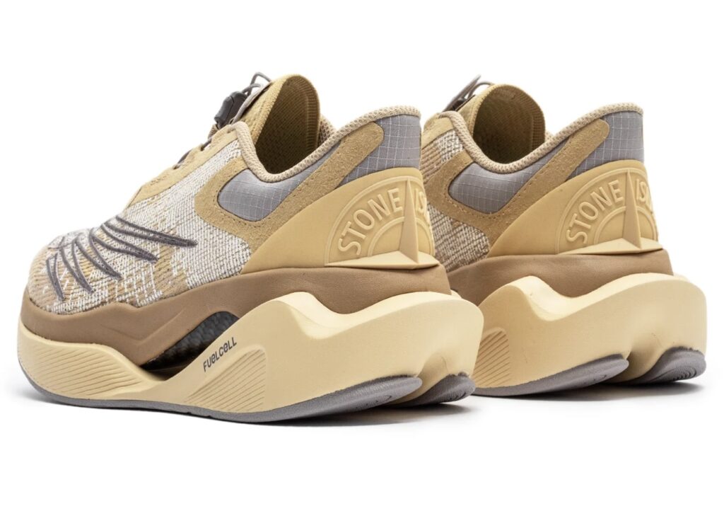 Stone Island’s Compass badge, re-molded as a raised medallion on the heel, grounds the shoe’s identity. Meanwhile, New Balance’s signature “N” is subtly embedded in the side panel, its understatement more akin to a designer’s signature than a brand stamp. The result is a shoe that carries authority not through branding, but through restraint.