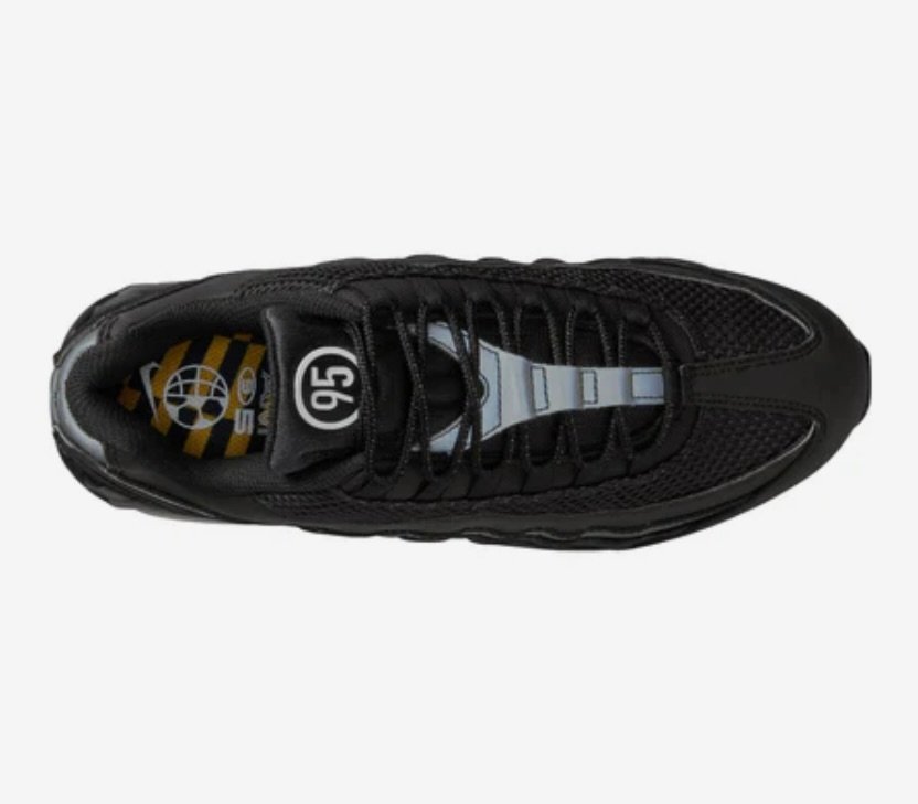 The Black / White – University Gold edition leans into the Air Max 95’s signature gradient aesthetic but introduces a bright pop of color that modernizes the classic silhouette.